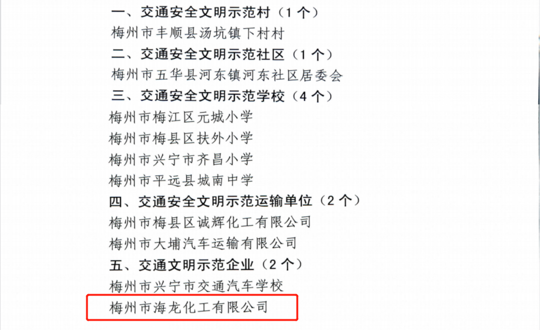 海龍化工積極響應(yīng)交通安全文明要求,自公司成立以來,深耕文明交通行動領(lǐng)域,致力于建設(shè)安全文明、和諧有序的道路交通環(huán)境工作,為營造文明和諧的城市環(huán)境貢獻力量。公司始終貫徹“安全第一,預(yù)防為主”的安全工作方針,注重交通安全文明建設(shè),通過加強教育、健全制度,強化監(jiān)督等措施,把交通安全作為公司安全生產(chǎn)中重要的一環(huán),認真貫徹落實,嚴格遵守交通法律法規(guī),實現(xiàn)了自公司成立以來無重大交通事故發(fā)生、無人員人身傷亡的目標(biāo),確保了生產(chǎn)經(jīng)營的正常運轉(zhuǎn)。
