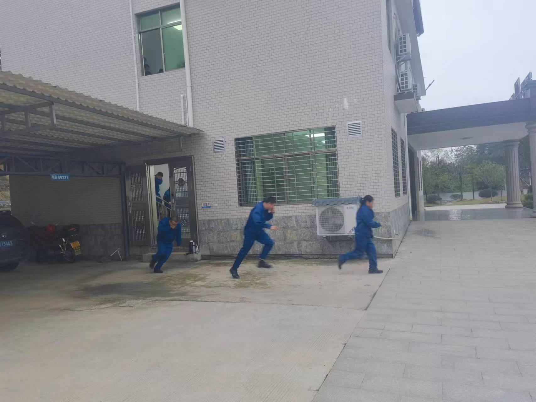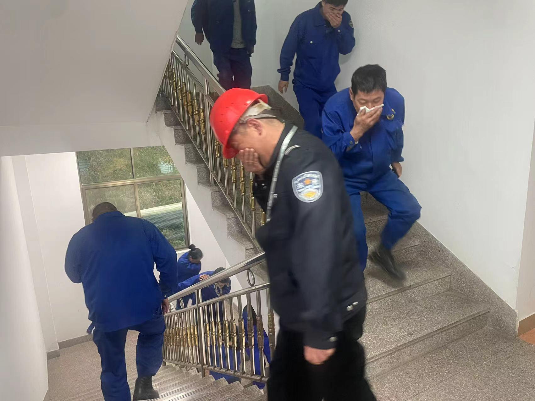 演練正式開始,模擬員工宿舍濃煙升起,火警報警聲響起,全體員工按照《消防應(yīng)急疏散預(yù)案》的要求,彎著腰,捂著口鼻,按指定安全消防通道,有序撤離至安全地點。