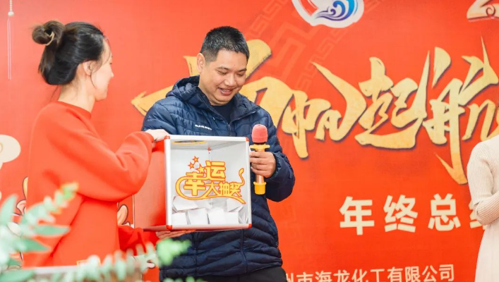 賴仕??偨?jīng)理為海龍化工優(yōu)秀團(tuán)隊(財務(wù)部)頒獎