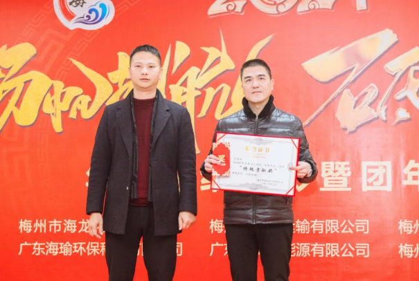 龍偉國副總為優(yōu)秀干部(李偉新、賴文彬、陳杏娜)頒獎