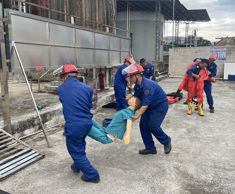 為進(jìn)一步提高員工安全意識(shí),增強(qiáng)人員觸電、被化學(xué)品灼傷及受限空間的應(yīng)急處置和滅火器實(shí)操的能力,結(jié)合公司實(shí)際,2024年9月26日下午,海龍化工在化工廠區(qū)進(jìn)行安全生產(chǎn)應(yīng)急演練。