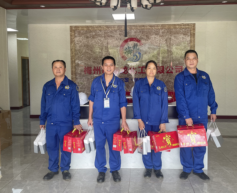 海龍化工董事長賴仕海、總經(jīng)理龍偉國及公司工會主席古洵出席此次活動。工會領(lǐng)導(dǎo)慰問了高溫作業(yè)下的一線職工,為他們送去防暑降溫物資,叮囑大家注意勞逸結(jié)合,確保人身健康和安全生產(chǎn)兩不誤。