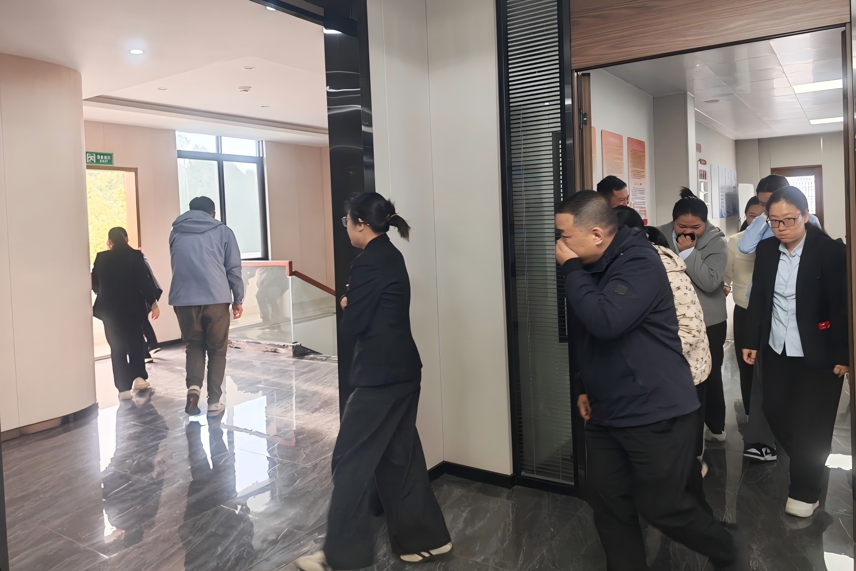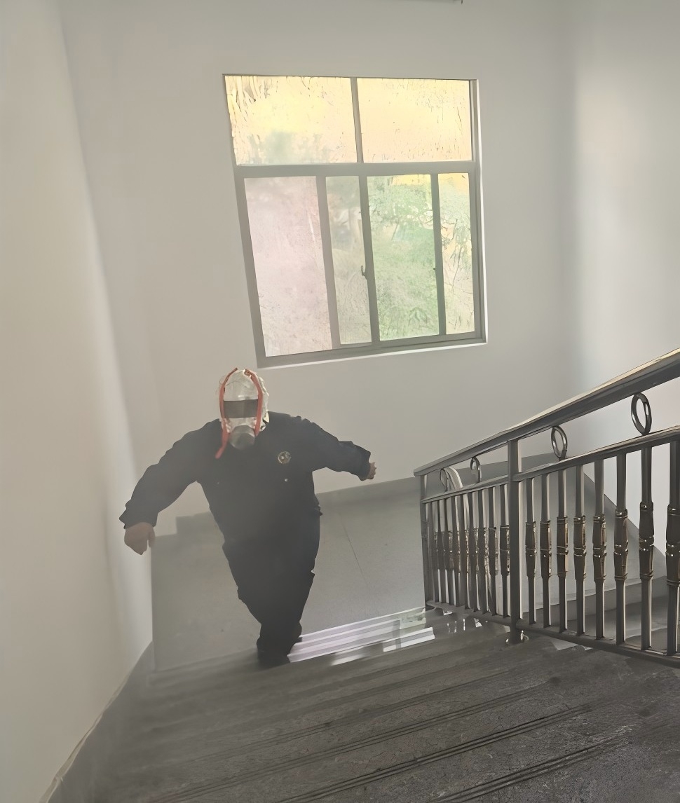 模擬茶水間突發(fā)火災(zāi),疑似電器使用不當著火,火勢發(fā)展迅猛并產(chǎn)生大量濃煙,保潔員發(fā)現(xiàn)后大喊“著火了,著火了”,并且拉響消防警報,接報后,相關(guān)人員使用滅火器撲救火災(zāi),并通知所有人員緊急撤離至安全地帶,最后進行人員清點。