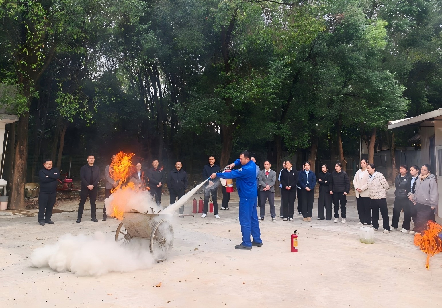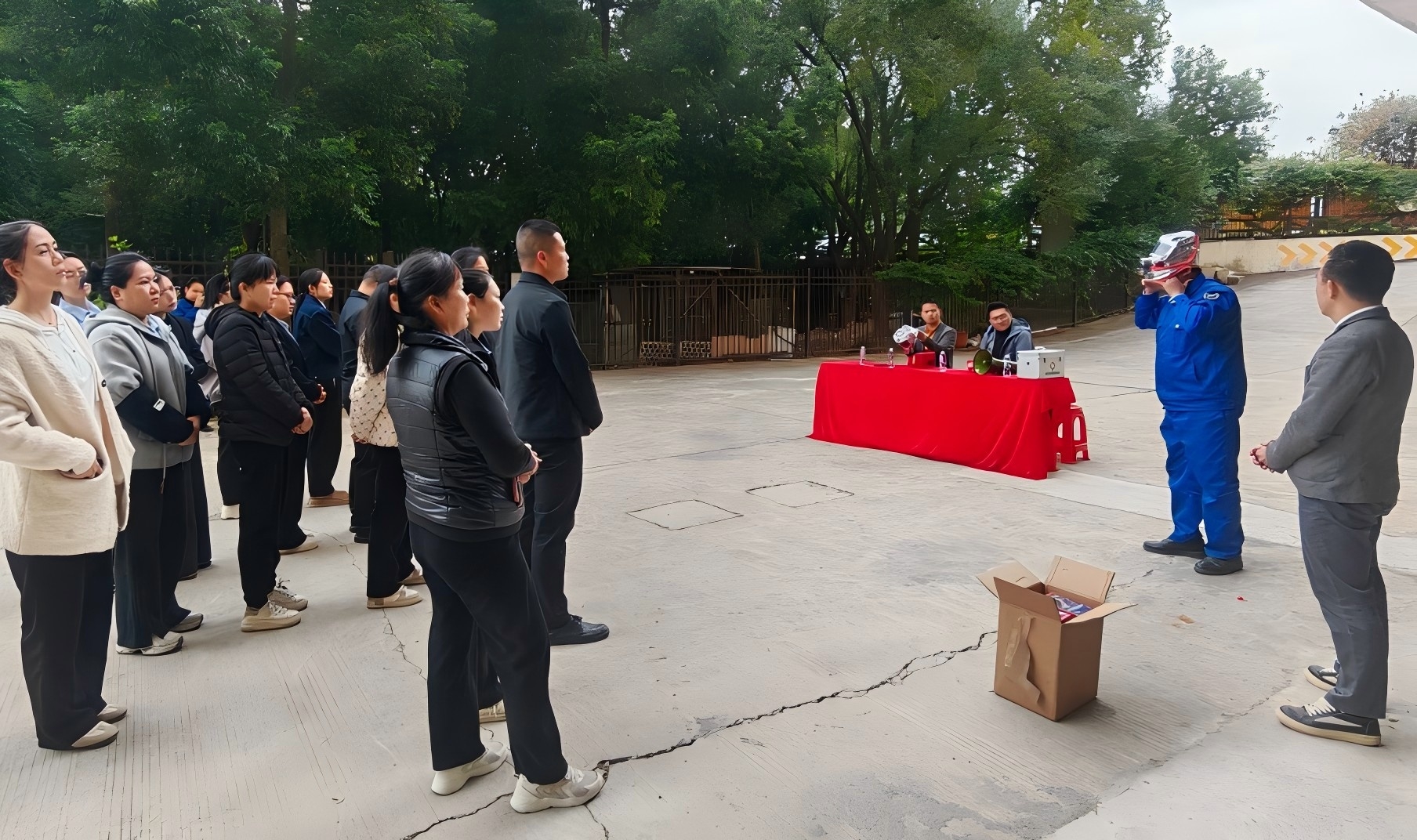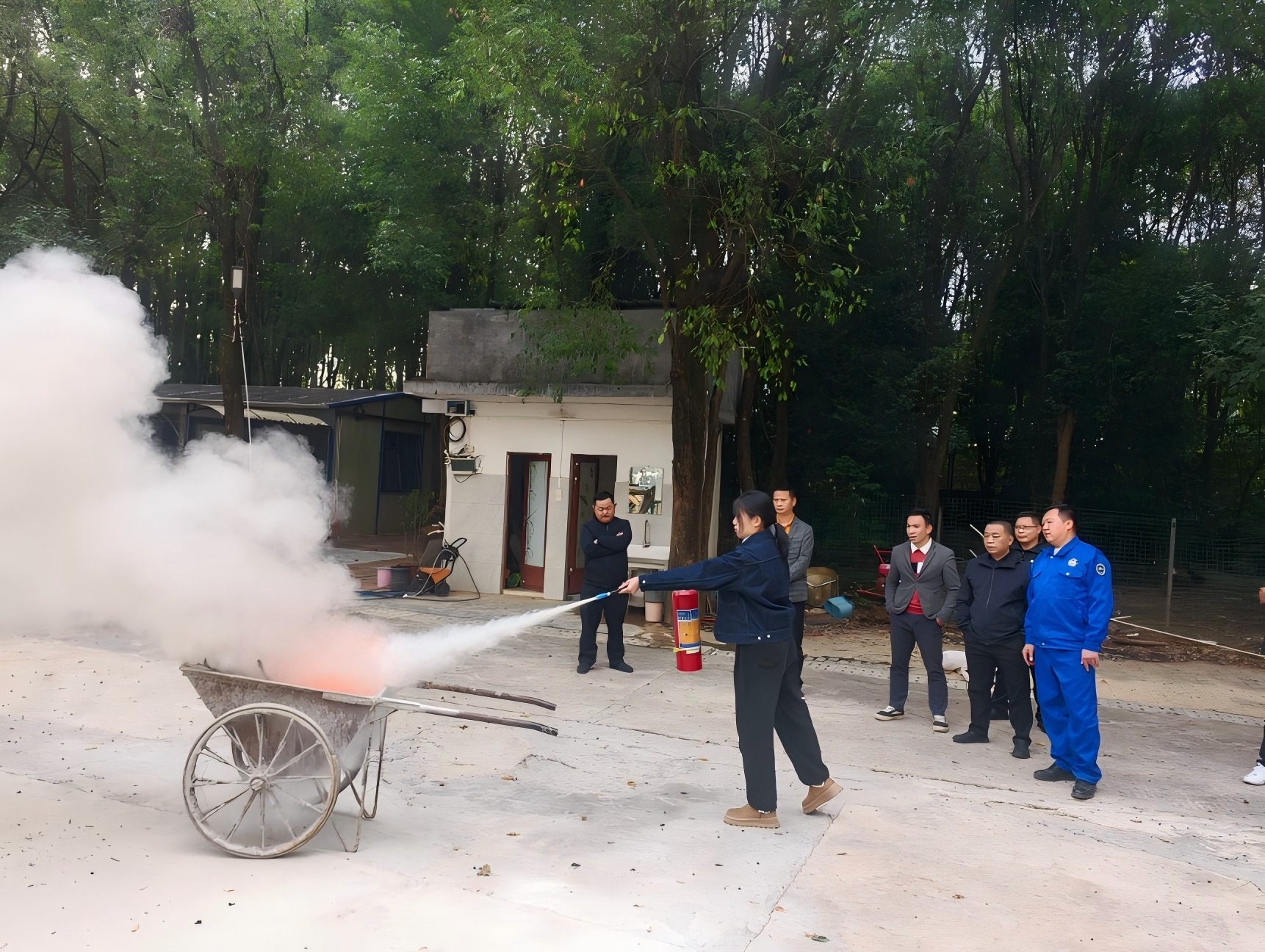 由指導員向大家講解使用滅火器及面罩的方法及注意事項,并安排每人依次進行滅火器滅火操作。