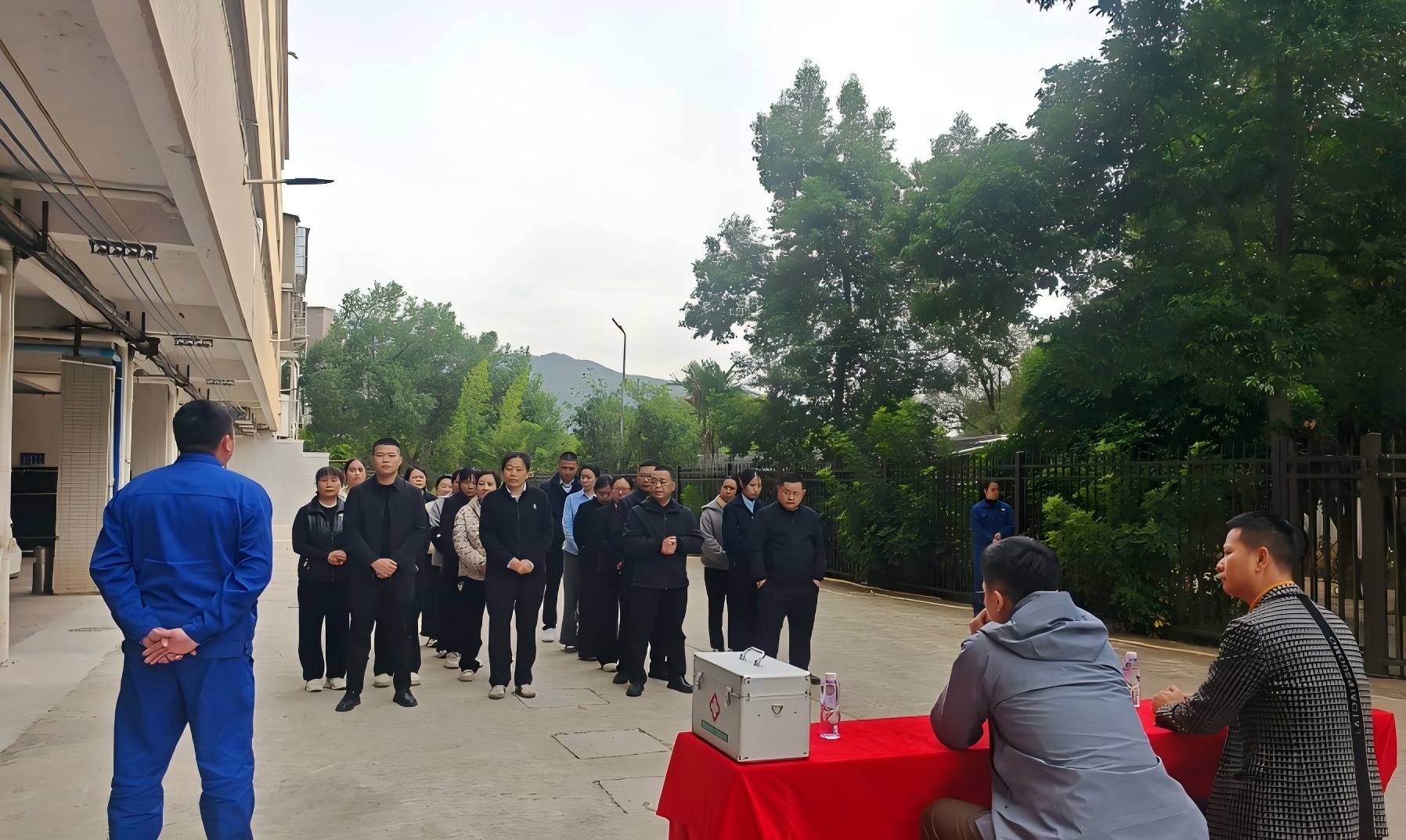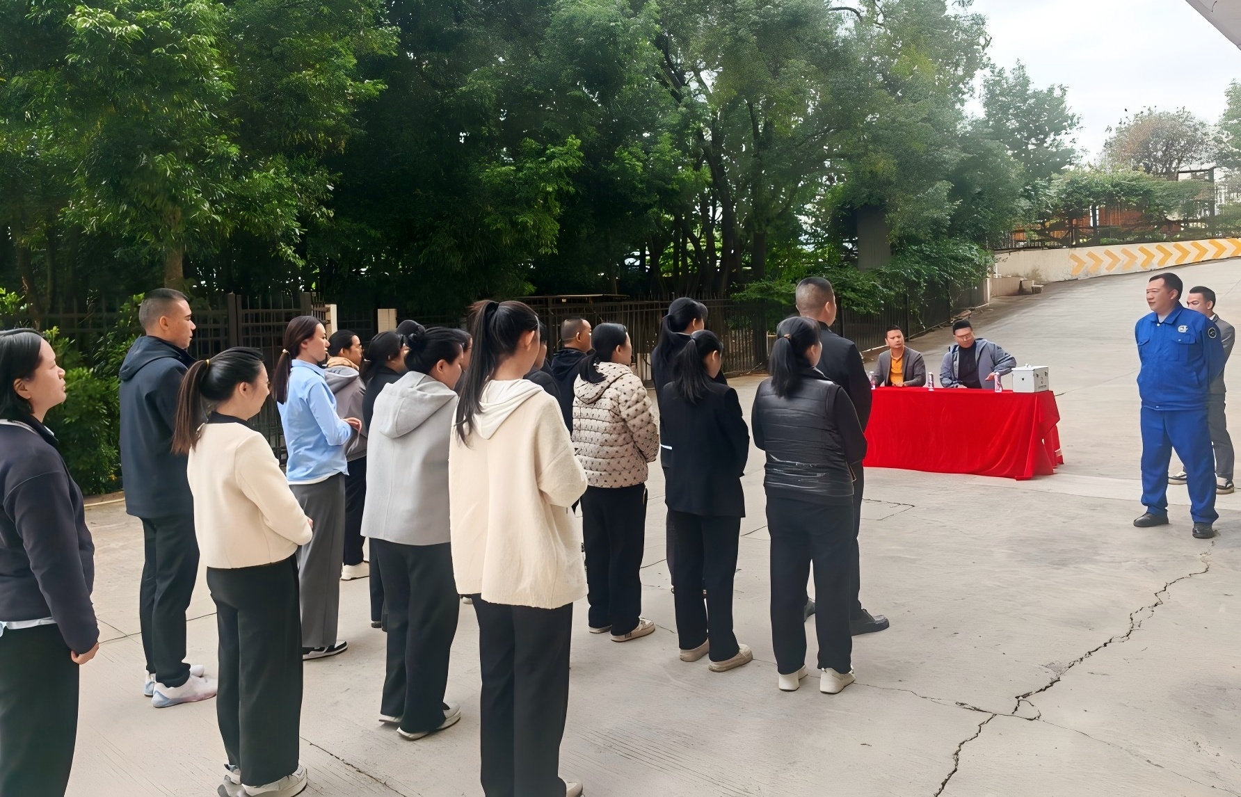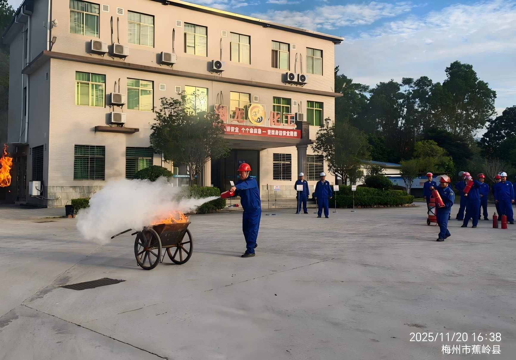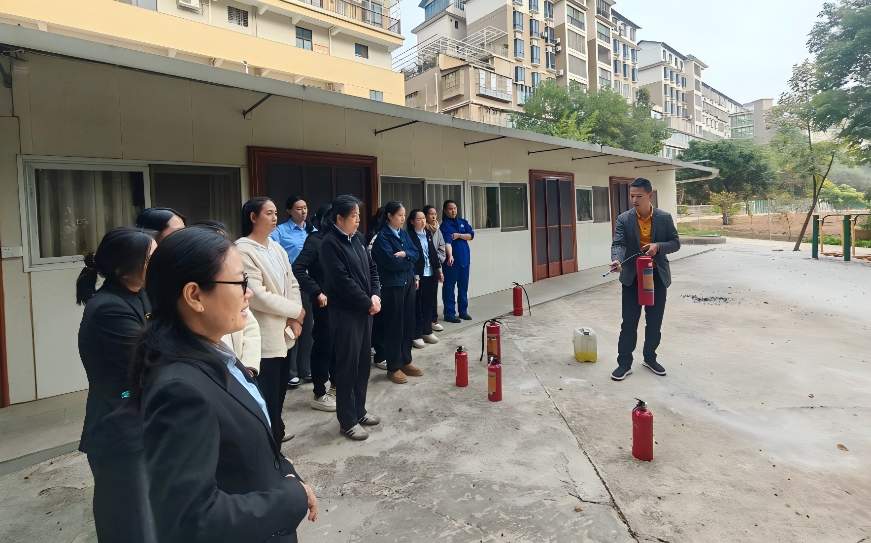由指導員向大家講解使用滅火器及面罩的方法及注意事項,并安排每人依次進行滅火器滅火操作。